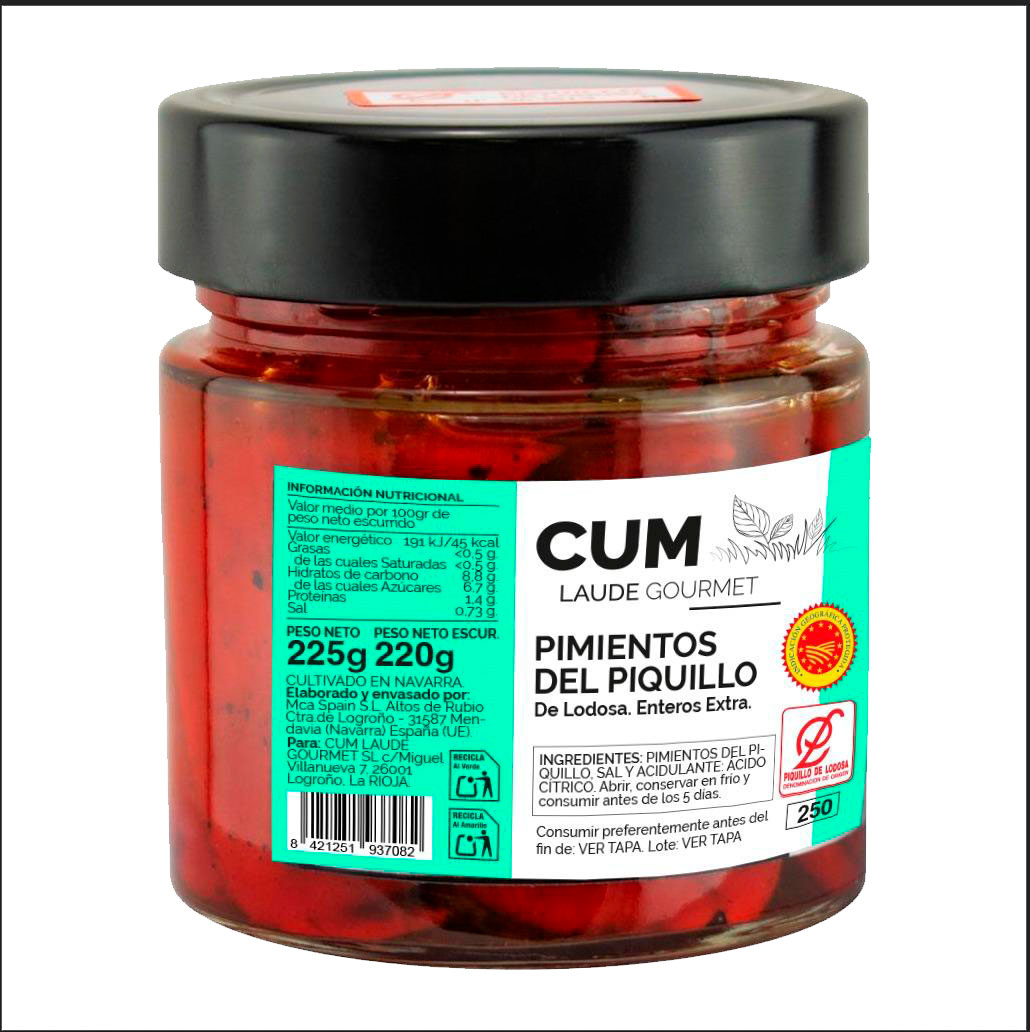 Con Denominación de Origen Protegida (D.O.P.) “Pimientos del Piquillo de Lodosa”, este producto garantiza un origen controlado y una elaboración respetuosa con la receta tradicional. Perfectos para rellenar, acompañar carnes o disfrutar en tapas y ensaladas, los pimientos del piquillo CUM Laude Gourmet aportan un toque gourmet a cualquier plato.